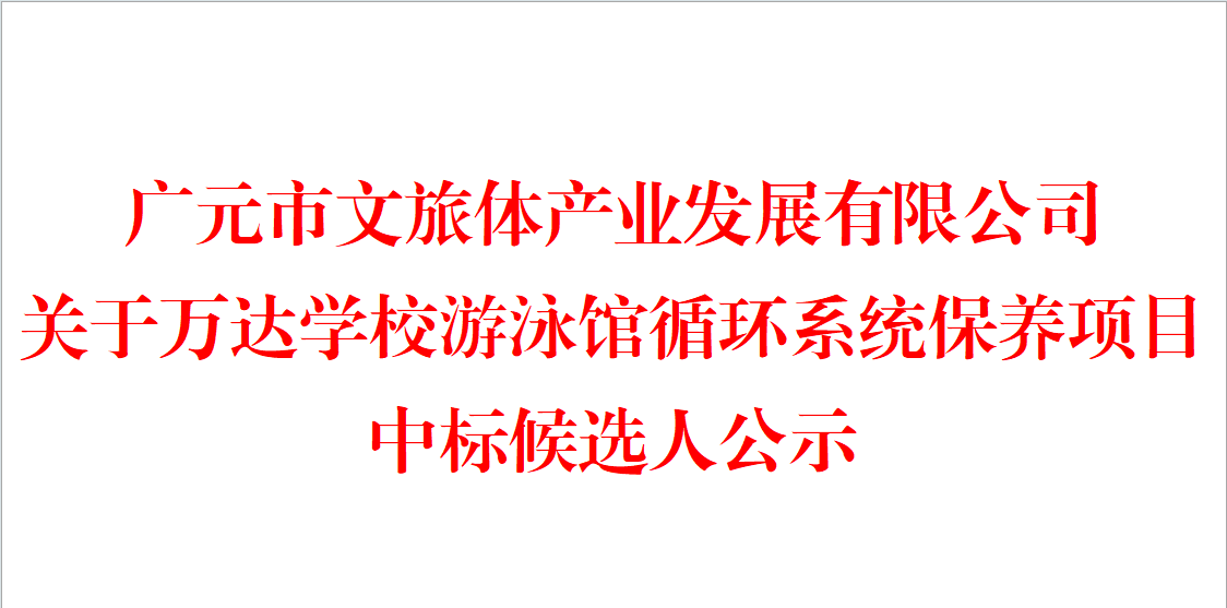 广元市文旅体产业发展有限公司 关于万达学校游泳馆循环系统保养项目中标候选人公示