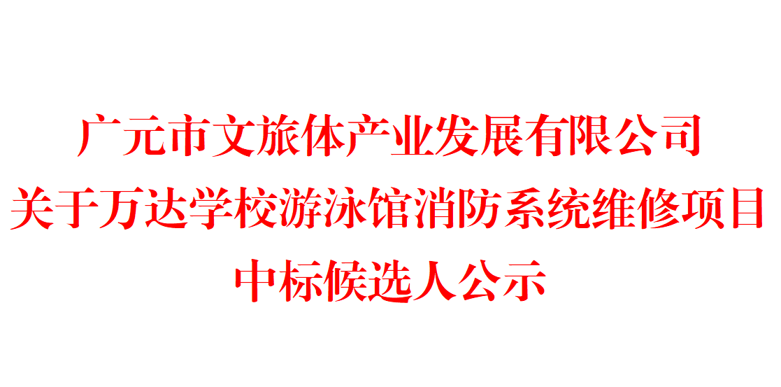 广元市文旅体产业发展有限公司 关于万达学校游泳馆消防系统维修项目中标候选人公示
