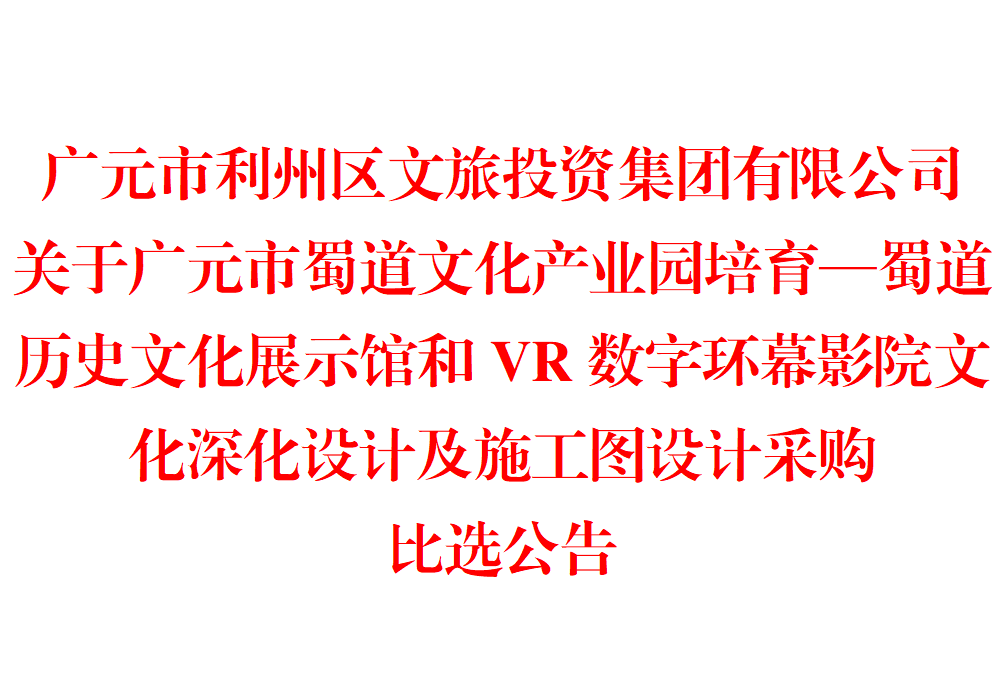 广元市利州区文旅投资集团有限公司 关于广元市蜀道文化产业园培育—蜀道历史文化展示馆和VR数字环幕影院文化深化设计及施工图设计采购比选公告