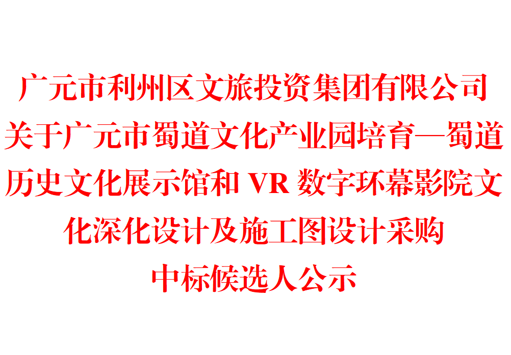 广元市利州区文旅投资集团有有限公司 关于广元市蜀道文化产业园培育—蜀道历史文化展示馆和VR数字环幕影院文化深化设计及施工图设计采购中标候选人公示