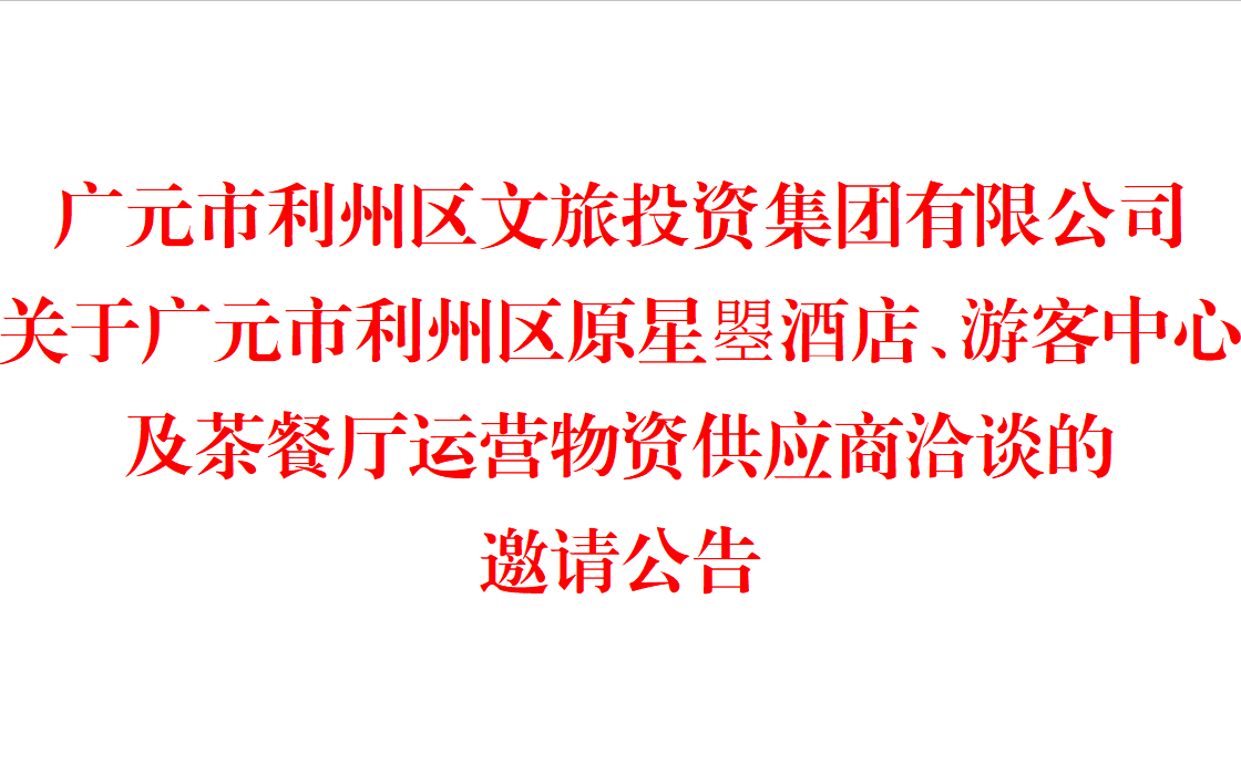 广元市利州区文旅投资集团有限公司 关于广元市利州区原星曌酒店、游客中心及茶餐厅运营物资供应商洽谈的邀请公告