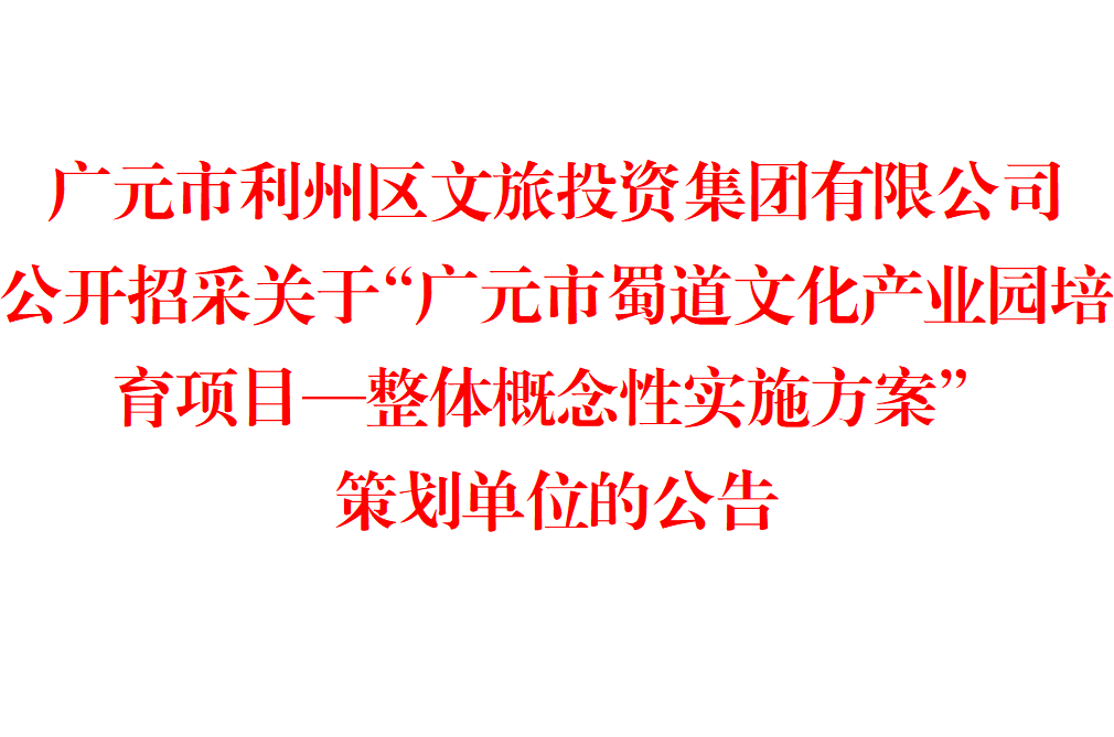 广元市利州区文旅投资集团有限公司公开招采关于“广元市蜀道文化产业园培育项目—整体概念性实施方案”策划单位的公告