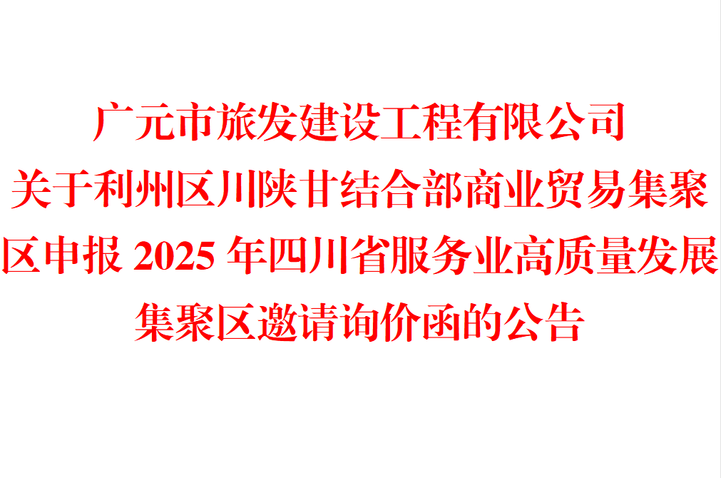 广元市旅发建设工程有限公司关于利州区川陕甘结合部商业贸易集聚区申报2025年四川省服务业高质量发展集聚区邀请询价函的公告