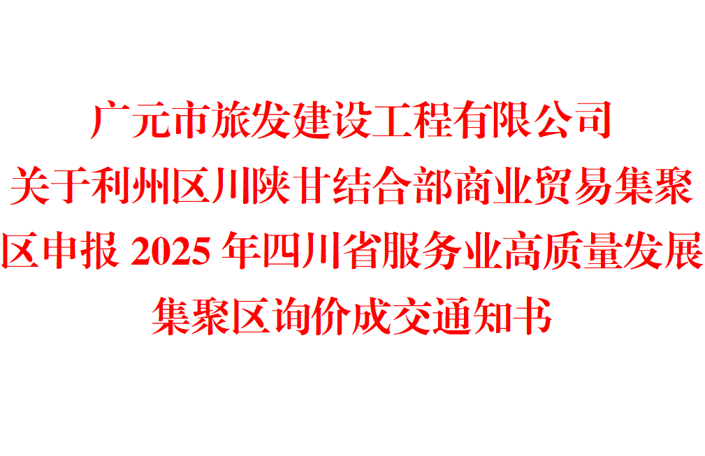 广元市旅发建设工程有限公司关于利州区川陕甘结合部商业贸易集聚区申报2025年四川省服务业高质量发展集聚区询价成交通知书
