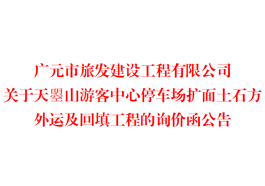 广元市旅发建设工程有限公司关于天曌山游客中心停车场扩面土石方外运及回填工程的询价函公告