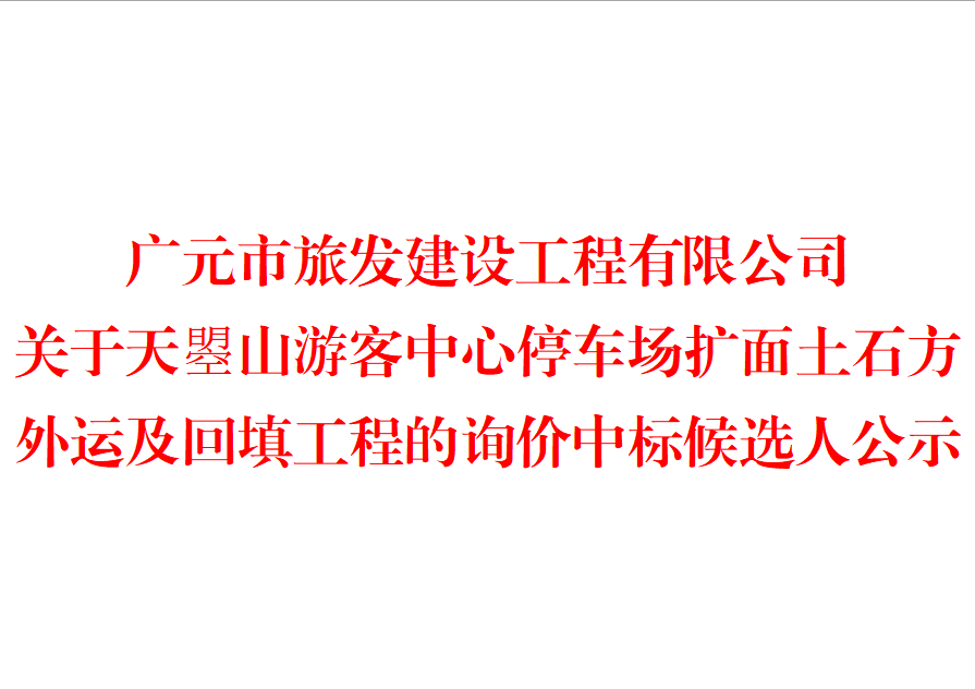 广元市旅发建设工程有限公司 关于天曌山游客中心停车场扩面土石方外运及回填工程的询价中标候选人公示