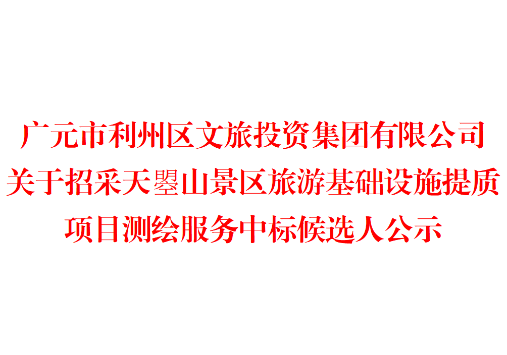 中标候选人公示 项目及标段名称天曌山景区旅游基础设施提质项目测绘服务业主单位广元市利州区文旅投资集团有限公司联系电话0839-6068539竞选地点贵商大厦12楼区文旅会议室竞选时间2025年...