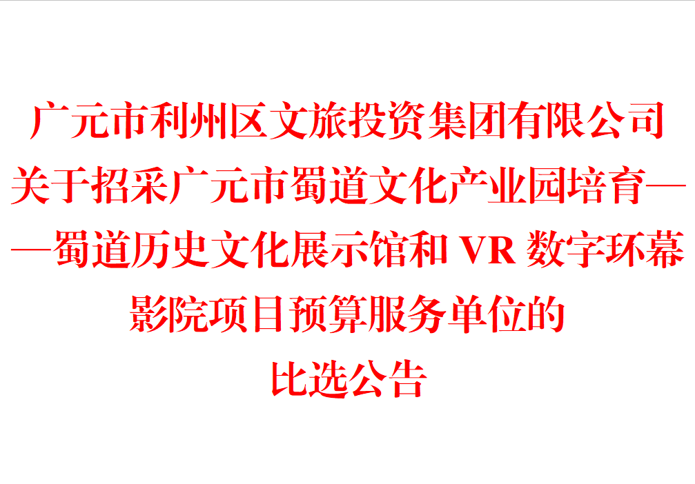 广元市利州区文旅投资集团有限公司 关于招采广元市蜀道文化产业园培育——蜀道历史文化展示馆和VR数字环幕影院项目预算服务单位的比选公告
