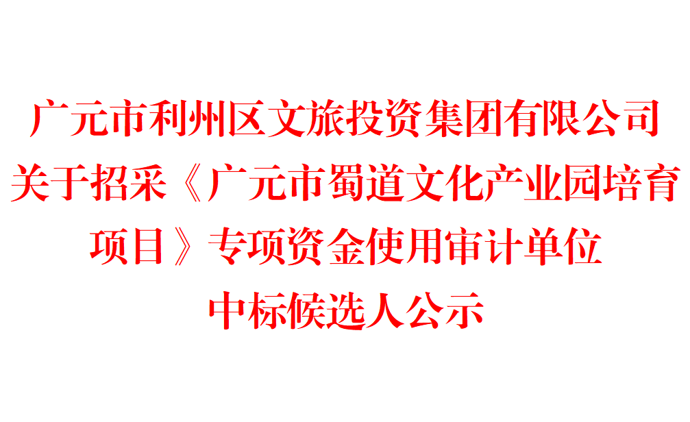 广元市利州区文旅投资集团有限公司 关于招采《广元市蜀道文化产业园培育 项目》专项资金使用审计单位中标候选人公示