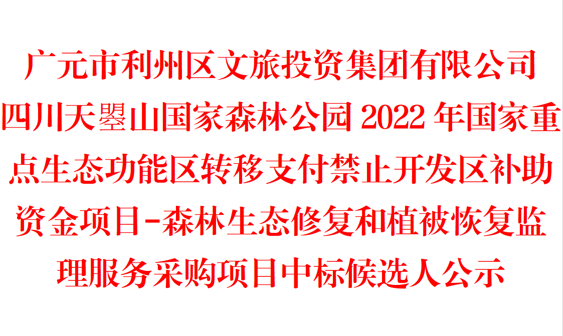广元市利州区文旅投资集团有限公司四川天曌山国家森林公园2022年国家重点生态功能区转移支付禁止开发区补助资金项目-森林生态修复和植被恢复监理服务采购项目中标候选人公示