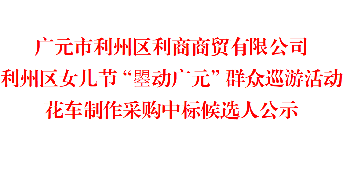 广元市利州区利商商贸有限公司利州区女儿节“曌动广元”群众巡游活动花车制作采购中标候选人公示