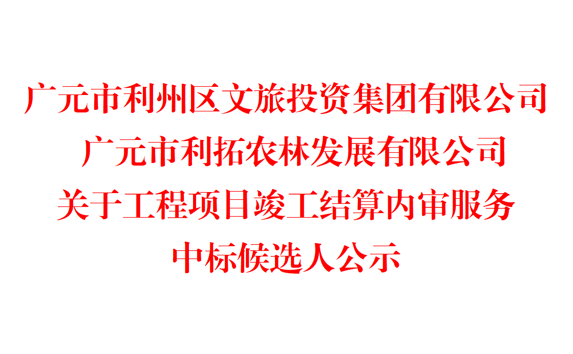 广元市利州区文旅投资集团有限公司 广元市利拓农林发展有限公司 关于工程项目竣工结算内审服务中标候选人公示