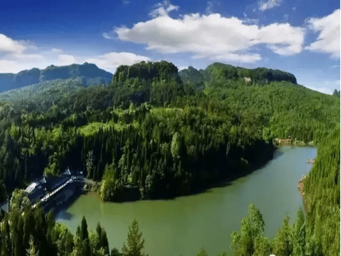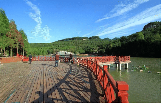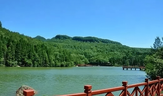 湖四周均为森林覆盖,主要以马尾松、柳杉、栎等为主。这里碧波绿涛,植被较茂盛,是天曌景区最主要的水域旅游资源。日月湖的由来前面也曾经提过。