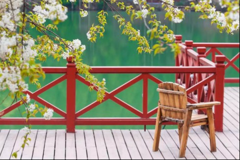 像0.7厘米般的细节关怀,在日月湖周围还有许多:如为让远足劳累的您能有休憩之地,廊桥两侧设有座椅;为让您更好地与湖水近距离接触,观景平台伸入湖中;为保您及您的家人的安全,每一处临水地段都设置栏杆。