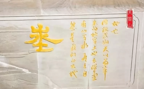 大门有块口巨石上刻着“天曌山”三个大字,字体神韵研华,遒劲有法。其字取自武则天的《升仙太子之碑》。